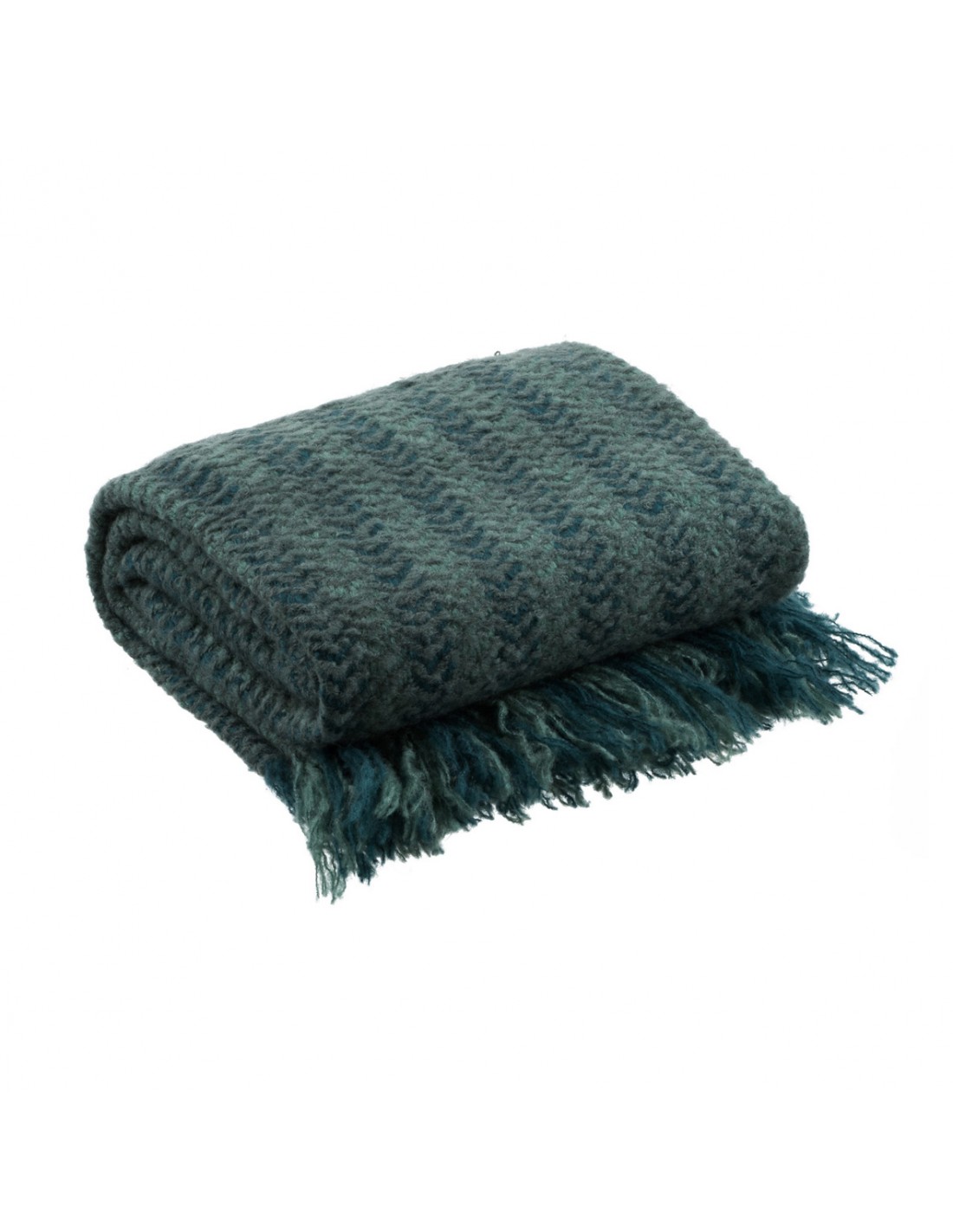 Plaid tricot chevron laine mélangée /tissé main. Lichen 130 x 170 cm